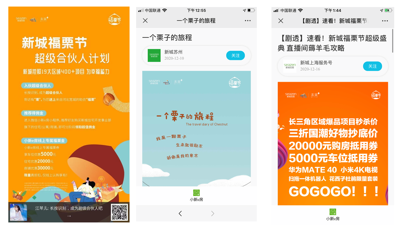 总计带来了50万+的浏览人数,带来7.6万+的分享,最终为新城长三角八大区域公司留存用户资产近20万,获取用户手机6900+组;为小程序导流近4000组(为排重后的新用户)最终成交30组。