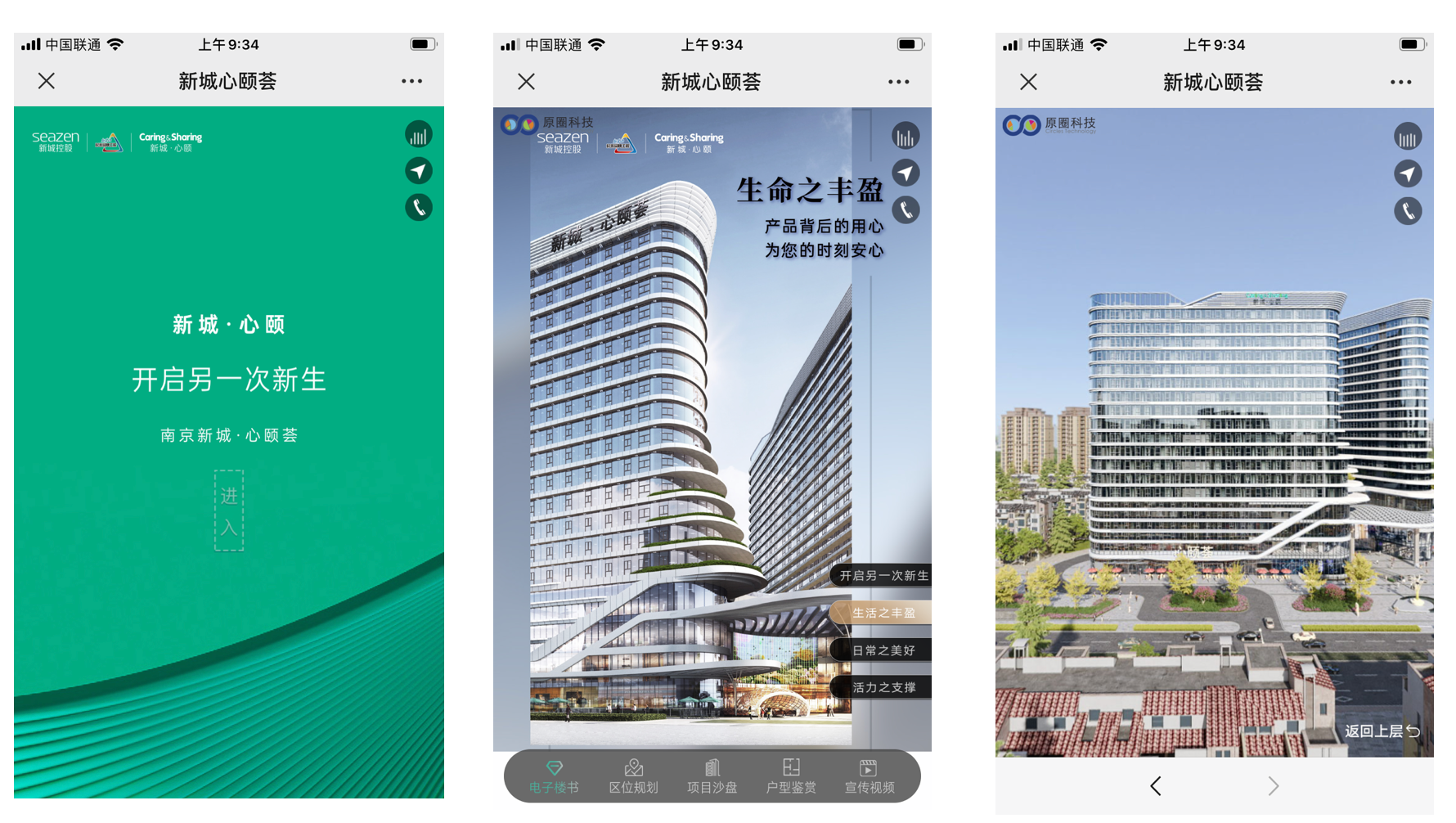 新城康养项目,做实体样板房等成本太高,且前期对工程进度有要求。数字化的营销物料可以极好地展示我们的信息,将场景化融入宣传片及线上楼书中。并且原圈提供的AI获客3D沙盘不仅仅是一种展示工具,它还具有数据洞察、销售线索回流、锁定用户行为,为销售成交加码助力,极大的满足了新城康养项目现阶段的获客需求。