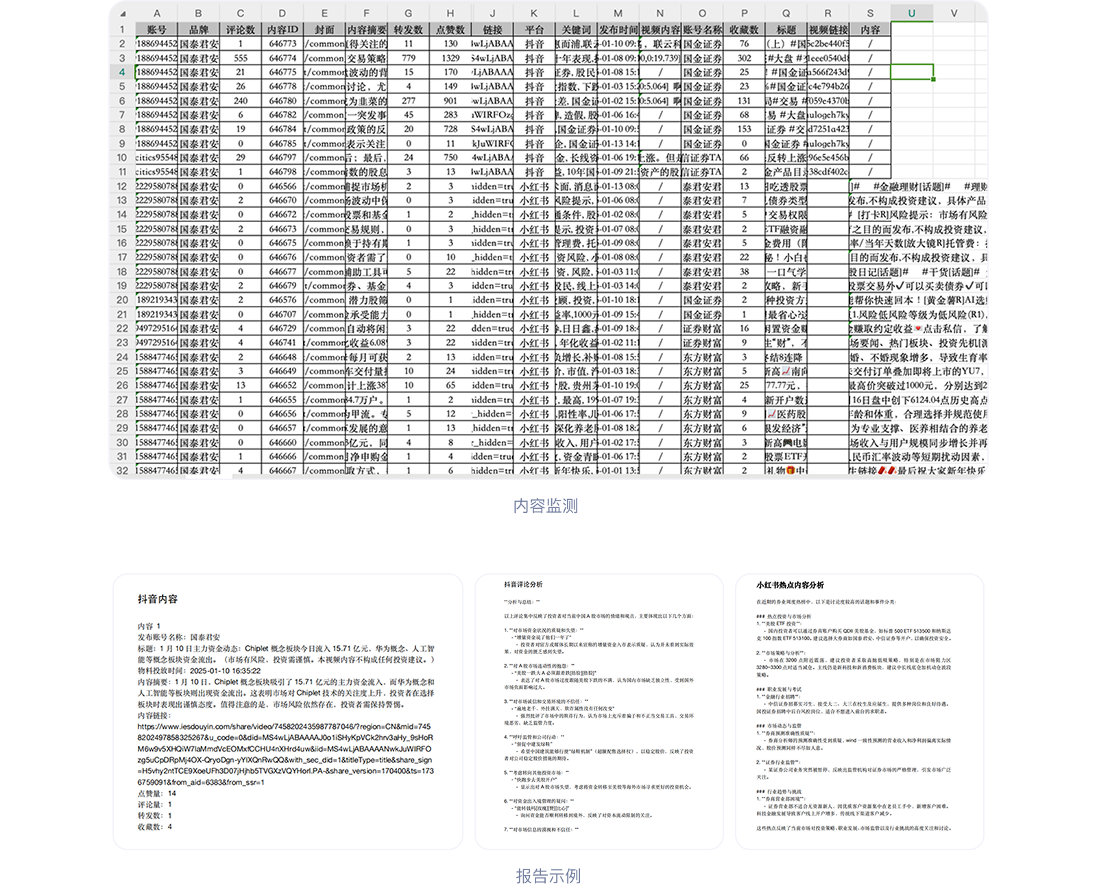 证券行业正经历投资者结构年轻化与信息获取渠道碎片化的双重变革,短视频、社交平台成为投资者认知金融产品、追踪市场动态的核心场景。然而,券商新媒体运营面临两大核心矛盾:一方面,用户对“实时解读北交所新规”“ETF投资攻略”等场景化内容需求激增,但传统内容生产模式依赖人工追踪热点,从数据采集到策略输出存在3-5天滞后期,导致同类题材扎堆、同质化严重;另一方面,行业竞争进入“分钟级响应”阶段——竞品APP功能升级、爆款投教视频的传播路径、监管舆情风向变动等关键信息,若未能实现小时级监测与策略反哺,极易错失营销窗口甚至衍生合规风险。