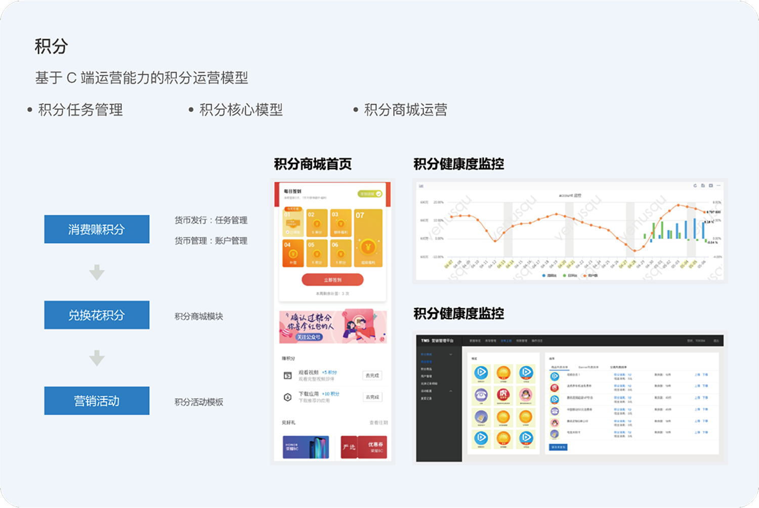 一站式会员管理体系平台支撑 + 管理支撑 助力房企沉淀客户资产,打造会员体系运营闭环。