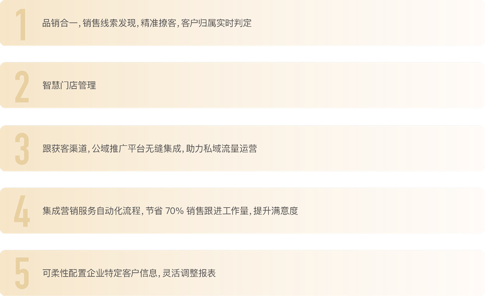 • 高效的销售流程管理由于高客单价,低消费频率的特点,高净值企业需要确保销售流程的顺畅和高效。CRM系统应能够支持销售人员从潜在客户识别、跟进、成交到售后服务的全流程管理,确保销售活动的有序进行。